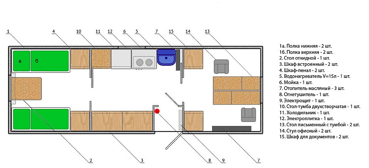 Для оформления заказа и определение ценовой политики в Брянск на "Бытовка на 4-х человек с офисом 8000х2500 мм" Вам достаточно набрать по телефону +7 (483) 244-51-45 или отправить заявку на наш электронный адрес bryansk@rezervuar-met.ru