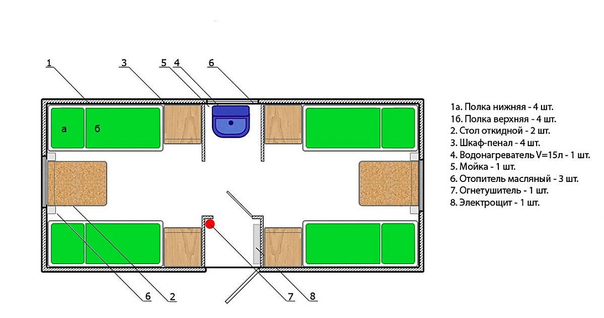 Рассчитать стоимость или купить "Бытовка на 8 человек 6000х2500 мм" от Завода Резервуаров и Негабаритных Металлоконструкций вы сможете всегда в короткие сроки.